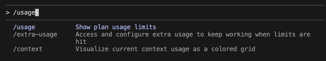 -re "/usage.*Show plan usage limits" { }